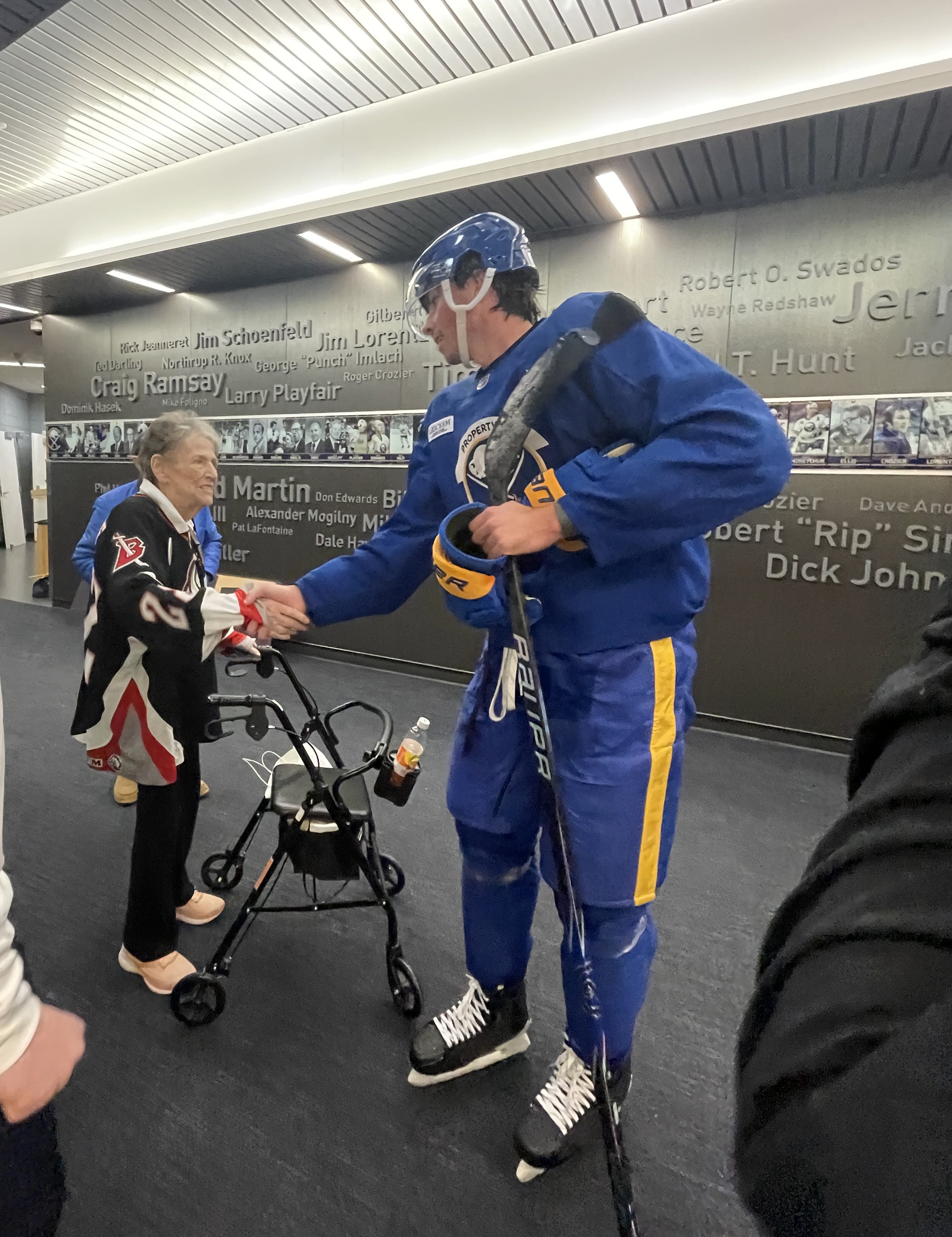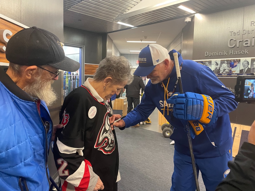 able to grant Maxine's wish and more! Not only did she meet and talk with Coach Ruff, but she met several of the players as well. Lindy and several players signed her jersey and she and her husband got to watch a team practice. With tears in her eyes she told us how the morning was "more than I could have ever imagined." A trip to Sabres store completed the day!